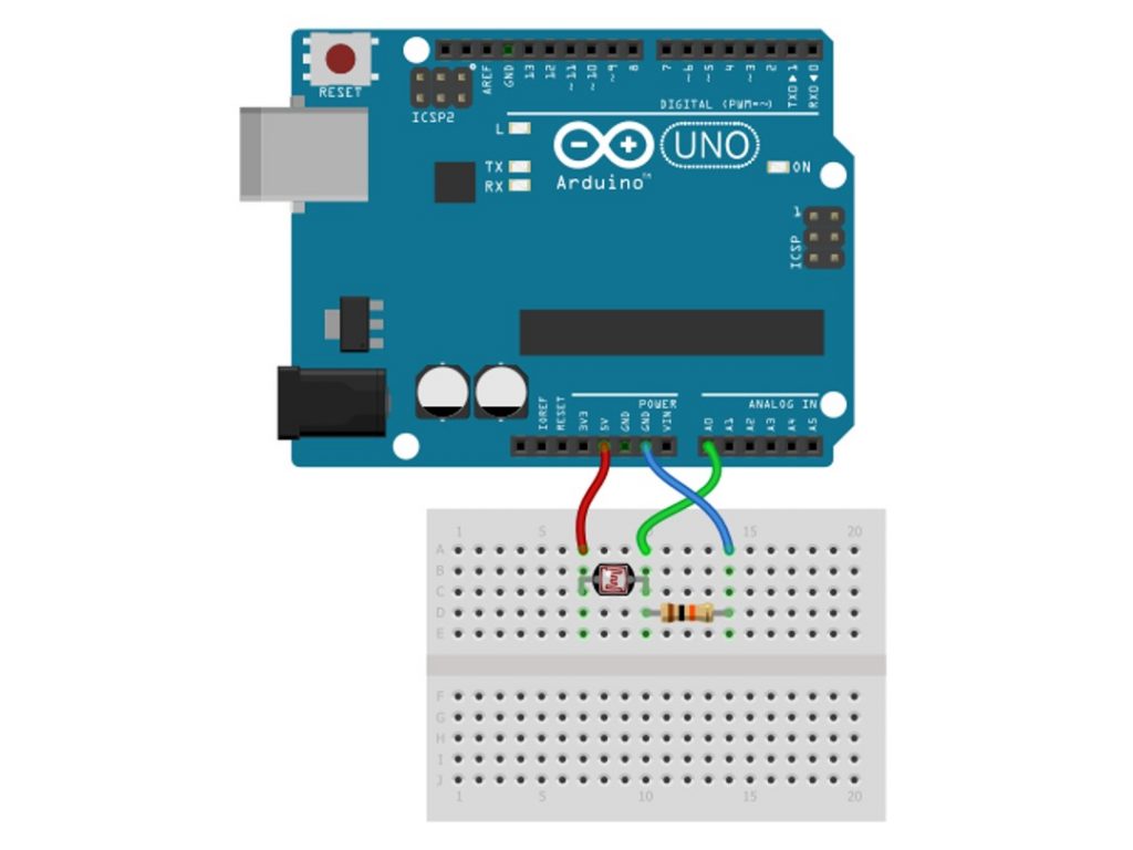 1. ต่อสาย LDR และ ตัวต้านทาน ตามรูปประกอบ