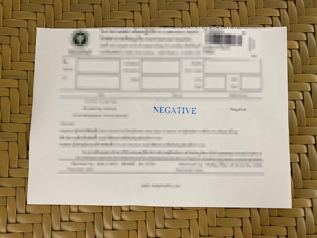 หลังจากนั้น ก็จะเป็นช่วงรอผล ก็จะมีเจ้าหน้าที่อีกท่านหนึ่ง คอยประกาศเรียกชื่อ ซึ่งของผมใช้เวลารอประมาณ 40 นาที และผลที่ได้ออกมาเป็น Negative หรือไม่พบเชื้อครับ