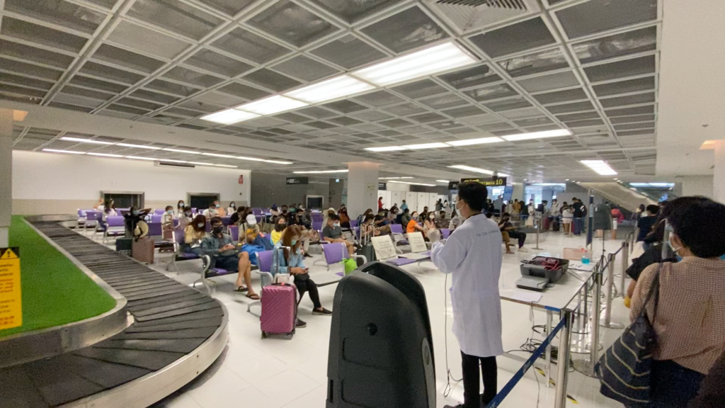 หากไม่ตรงเงื่อนไข จะต้องถูกตรวจวินิจฉัย Antigen Rapid Test เพื่อคัดกรองผู้ติดเชื้อโควิด ด้วยการเก็บตัวอย่างแบบ Nasal Swab หรือแบบแหย่จมูก ทั้งผู้ที่เดินทางมาทางเครื่องบิน (สนามบิน) และทางรถยนต์ (ด่านท่าฉัตรไชย)
