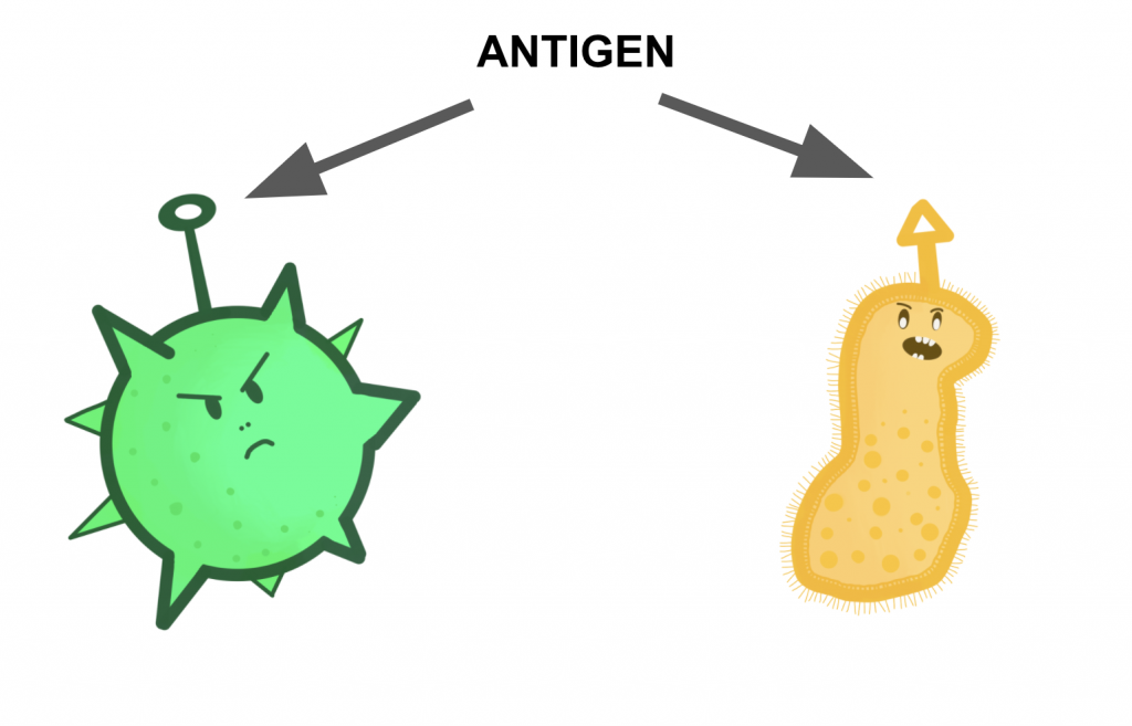 เวลามีสิ่งแปลกปลอม หรือเชื้อโรค เข้ามา ร่างกายจะพยายามทำความรู้จักเอกลักษณ์ ของสาร หรือเชื้อโรคเหล่านั้น เราเรียกเอกลักษณ์นั้นว่า Antigen